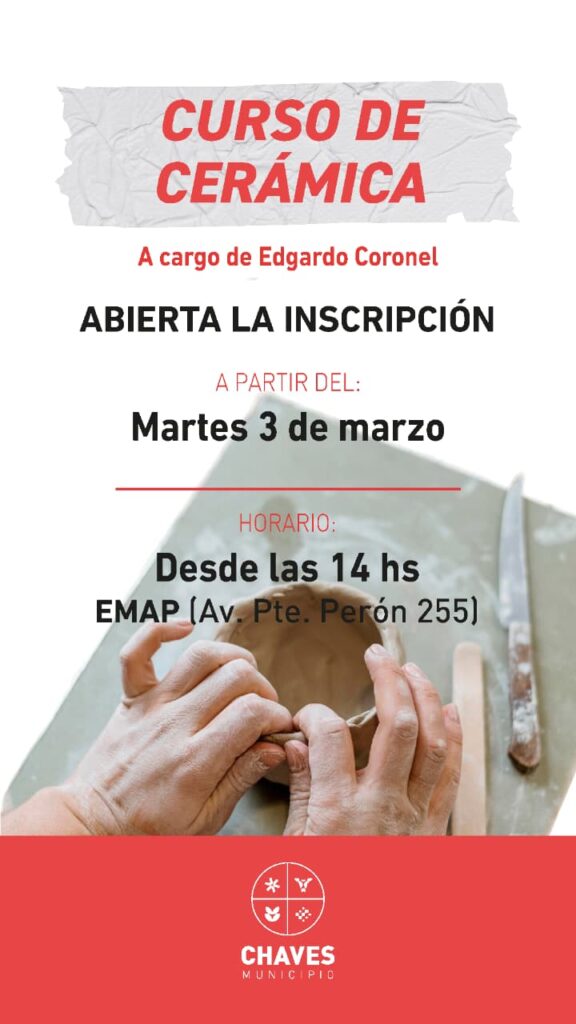 Por otra parte, también se ofrece el curso de Cerámica, a cargo de Edgardo Coronel, que se dicta en la sede de EMAP, ubicada en Avenida Presidente Perón Nº255, en el horario de las 14:00. Si bien el curso comenzó el pasado 3 de marzo, las inscripciones continúan abiertas para quienes deseen sumarse a esta propuesta.