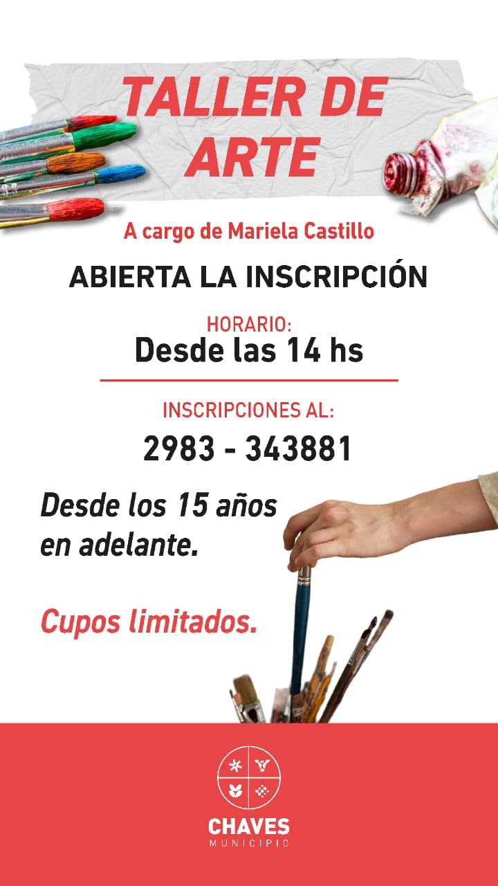 Desde el Área de Educación de Chaves Municipio se informa que continúan abiertas las inscripciones para participar de distintos talleres y cursos artísticos destinados a la comunidad, con propuestas pensadas para fomentar la creatividad, el aprendizaje y el desarrollo cultural.