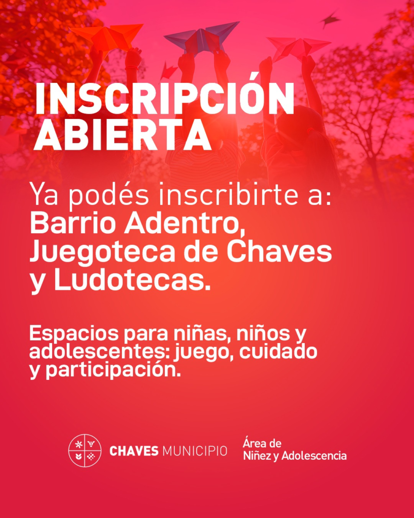 Chaves Municipio informa que ya se encuentra abierta la inscripción a los dispositivos Barrio Adentro, Juegoteca y Ludotecas en las localidades del distrito.