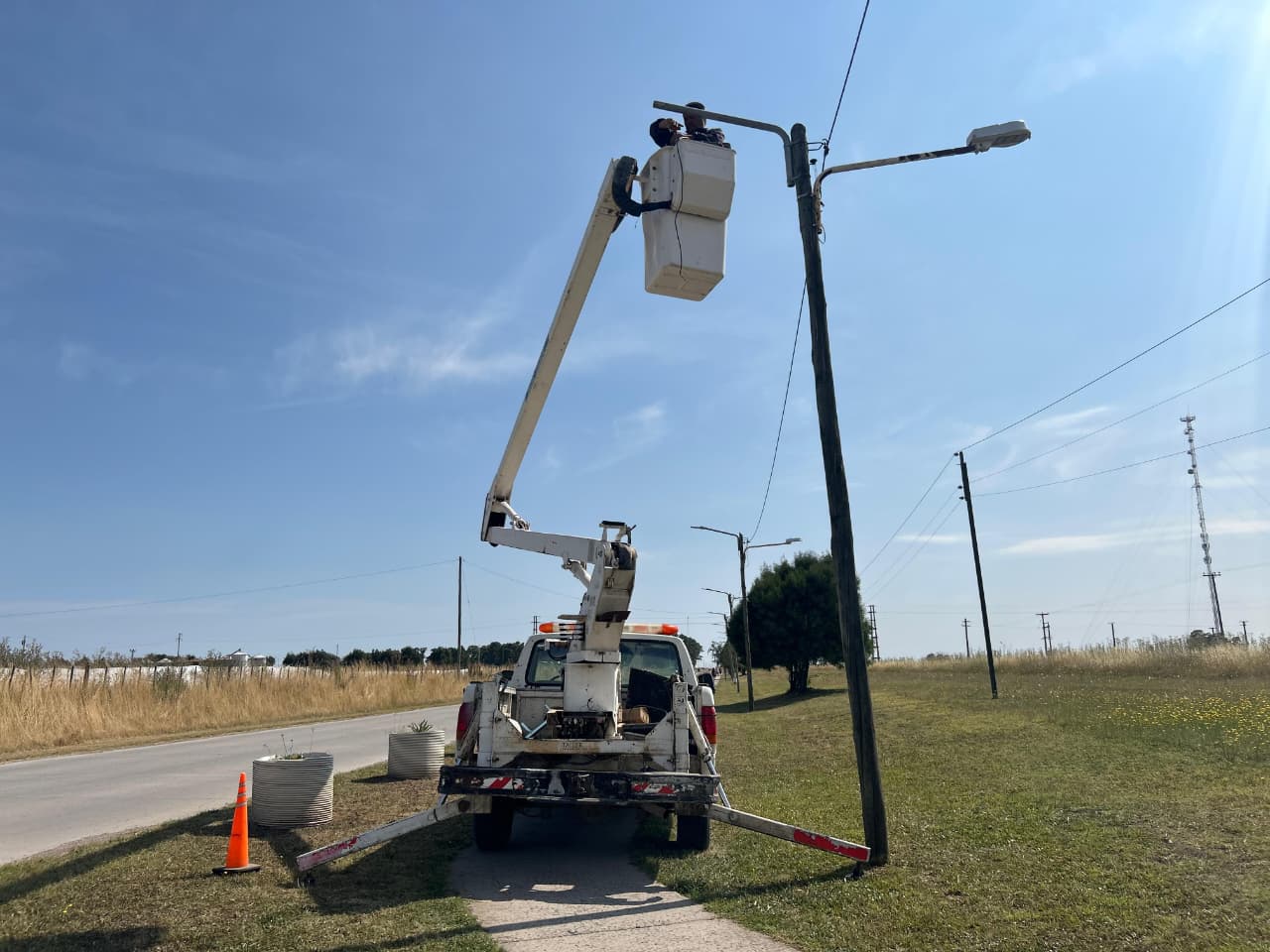 • Reconexión de la línea de fase de iluminación en columnas de Av. Pte. Perón, entre Lavalle, Av. San Martín y Av. Carricart.