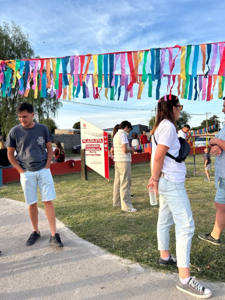 Además, por Ordenanza N° 3472 del Honorable Concejo Deliberante, la plazoleta fue nombrada “Eduardo Carabajal”, en reconocimiento a un vecino comprometido con el deporte, la comunidad y los valores que hoy inspiran a seguir construyendo un Chaves mejor. Asimismo, el conjunto de viviendas vecinas fue designado como Barrio “Domingo Rago”, en homenaje a otro gran benefactor de la comunidad.
