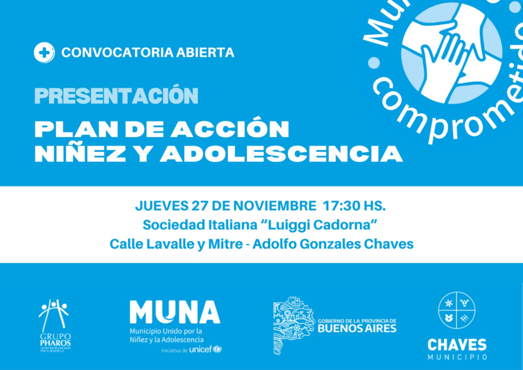 La Subsecretaría de Desarrollo Económico, Social y Comunitario invita a toda la comunidad a participar de la *Presentación del Plan de Acción del Programa MUNA – Municipio Unido por la Niñez y la Adolescencia, una iniciativa impulsada por *UNICEF Argentina y Grupo Pharos que promueve el fortalecimiento de las políticas locales orientadas a garantizar los derechos de niños, niñas y adolescentes.