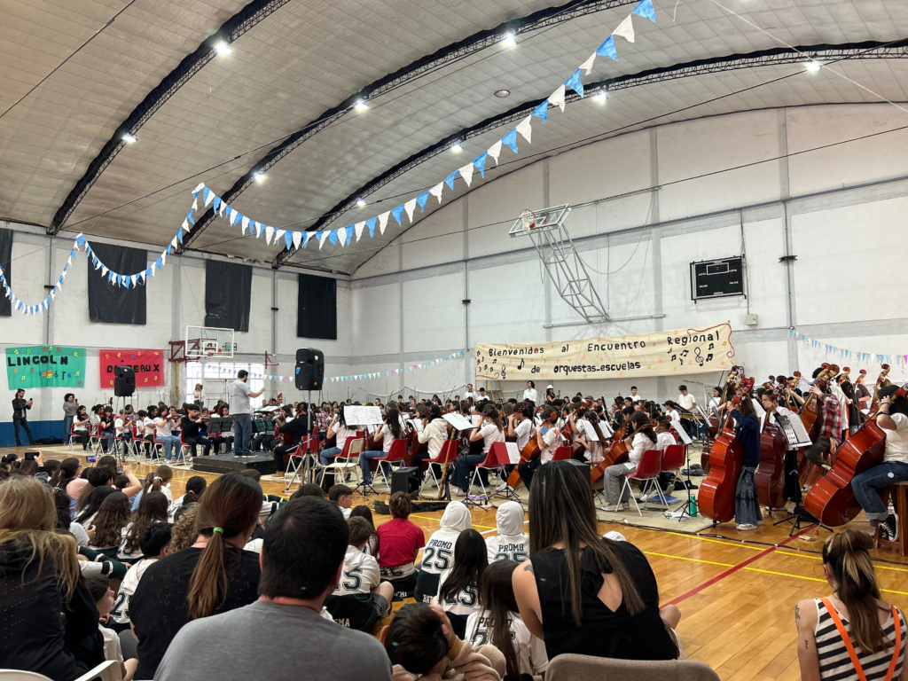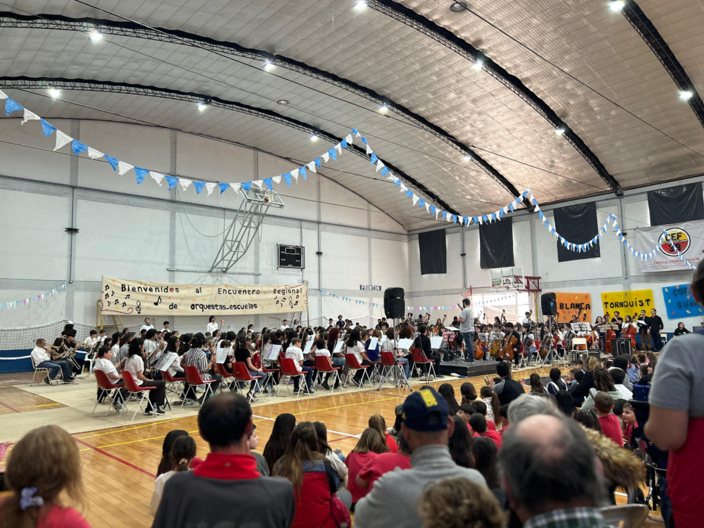 Este lunes se llevó a cabo en el Polideportivo Municipal de Adolfo Gonzales Chaves el XIV Encuentro Regional de Orquestas Bonaerenses, con un gran marco de público que acompañó a las distintas formaciones musicales participantes.