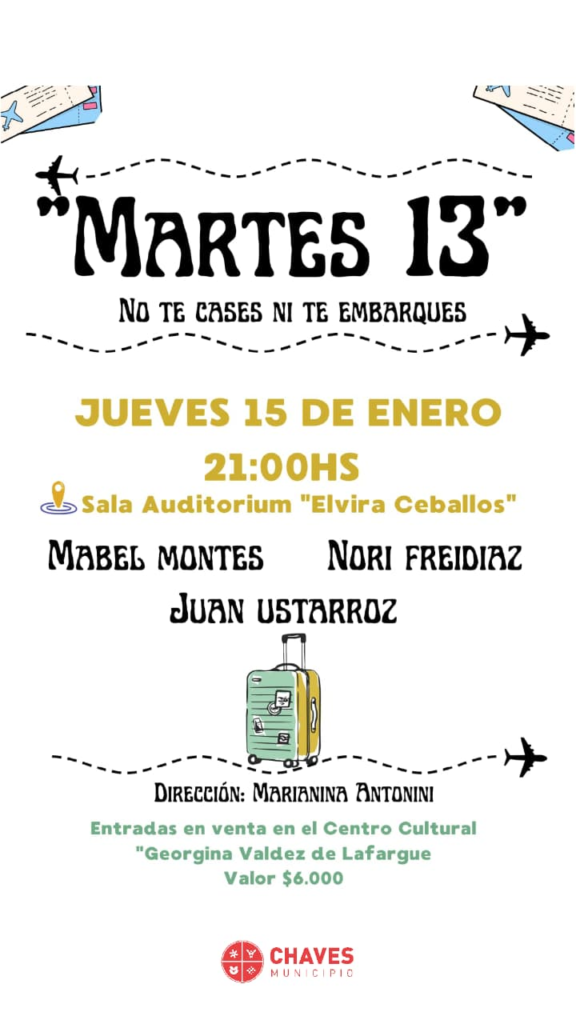 El próximo jueves 15 de enero a las 21:00 horas, la Sala Auditorium “Elvira Ceballos” será escenario de la obra teatral “Martes 13”, una comedia que juega con las creencias populares, el azar y los enredos que surgen cuando la superstición se cruza con la vida cotidiana.