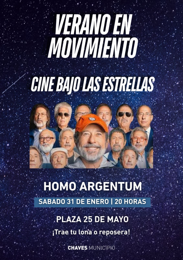 La primera proyección será el sábado 31 de enero, a partir de las 20:00, en la Plaza 25 de Mayo, donde se exhibirá la película Homo Argentum, protagonizada por Guillermo Francella, una comedia que invita a la reflexión desde el humor.