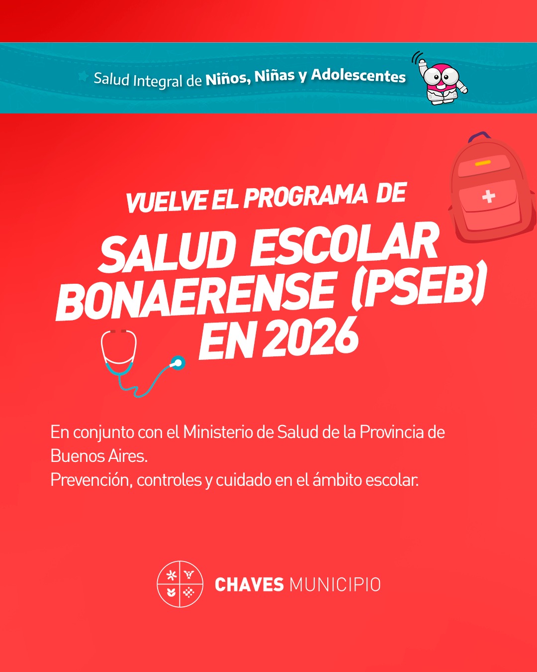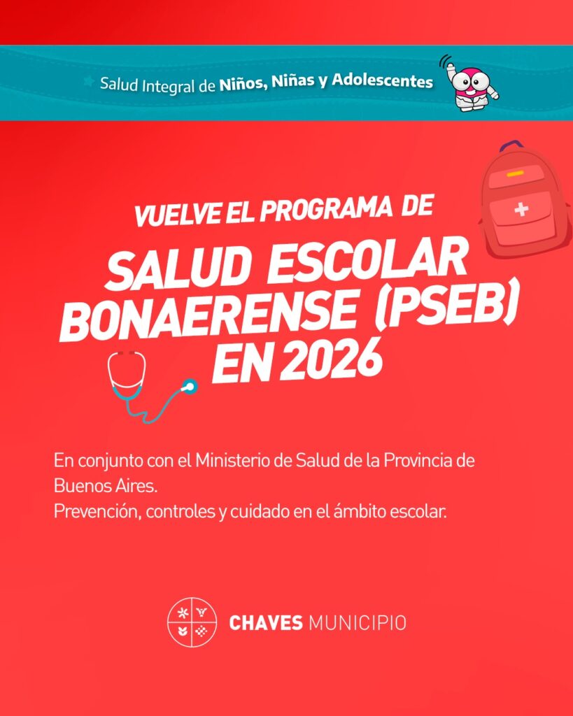 Chaves Municipio informa que en 2026 se retomará el Programa de Salud Escolar Bonaerense (PSEB), una política pública que se desarrolla en conjunto con el Ministerio de Salud de la Provincia de Buenos Aires, con el objetivo de fortalecer la prevención y el cuidado integral de la salud en el ámbito escolar.