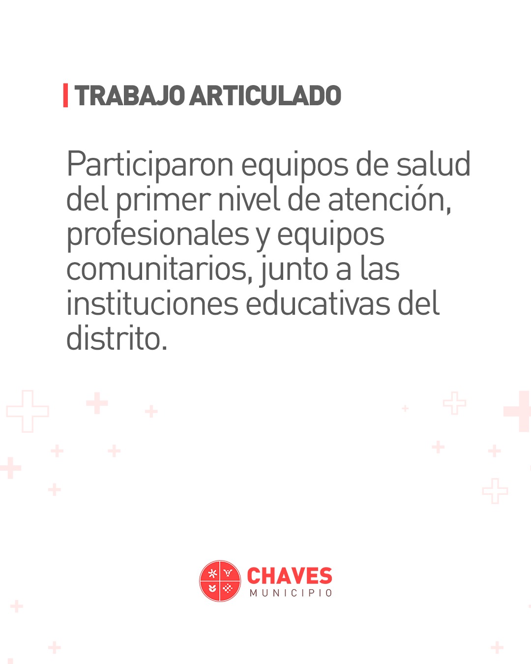 El programa se llevó adelante mediante un trabajo articulado entre equipos de salud del primer nivel de atención, profesionales, equipos comunitarios y las instituciones educativas del distrito, fortaleciendo el vínculo entre salud y escuela.